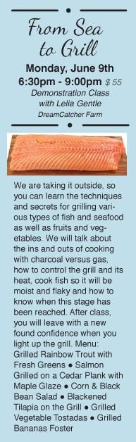Thursday, May 22nd ● 11:30 - 2:00 pm ● "Let The Cookouts Begin" ● Demonstration Class ● John Plymale - Porcini ● $45.00 Summer means more of the outdoors, including cooking out with family and friends. Kick off the season with a sizzling selection of summertime favorites. Menu: Slow Cooked Baby Back Ribs with Sweet & Spicy Barbeque Sauce ● Sensational Sweet Potato Salad ● Buttermilk Slaw with Fire Roasted Corn & Applewood Smoked Bacon ● Blueberry Cheesecake Galettes